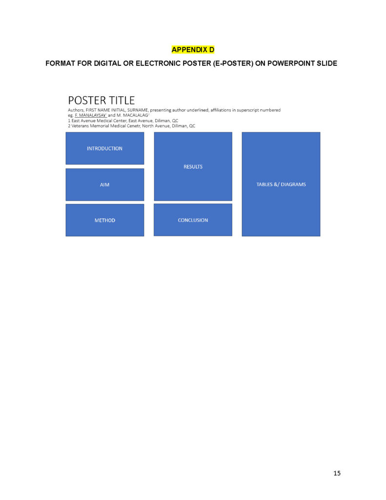 d. The assigned author/presenter will be required to provide hard and/or soft copy of the manuscript of the research material for review by the PUA Research Committee. Pls refer to the podium presentation appendix A for instructions.